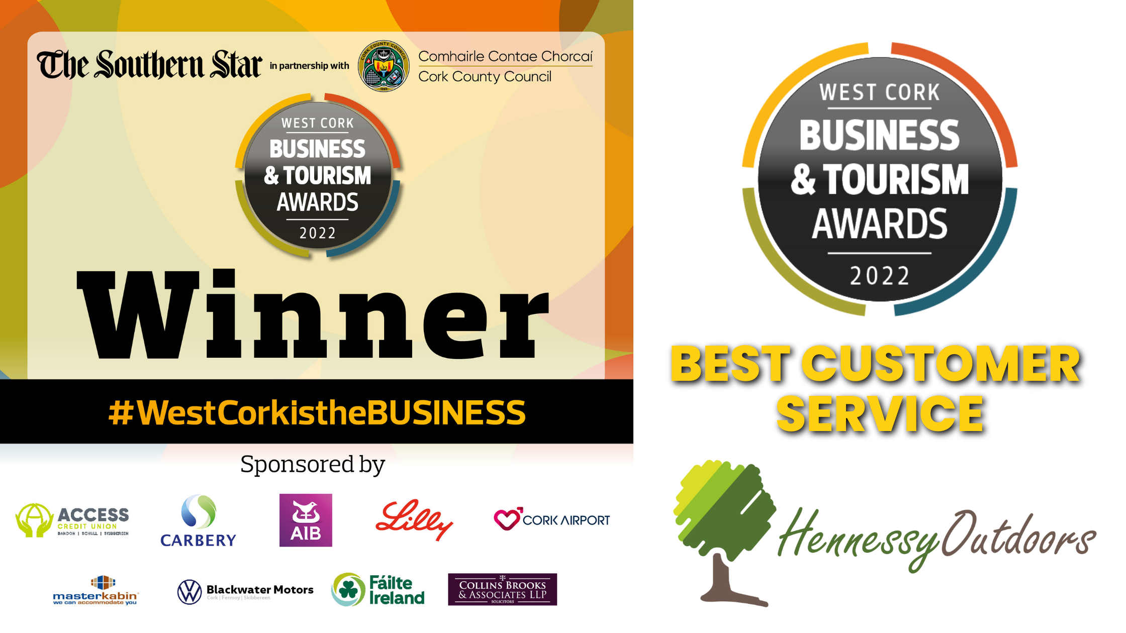 We are delighted to announce that Hennessy Outdoors recently received the prestigious “Best Customer Service Award” as part of the West Cork Business and Tourism Awards held last Friday at the Maritime Hotel in Bantry. The event was sponsored by the Southern Star, one of the region’s leading newspapers.