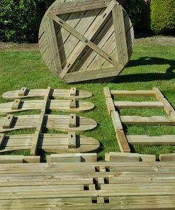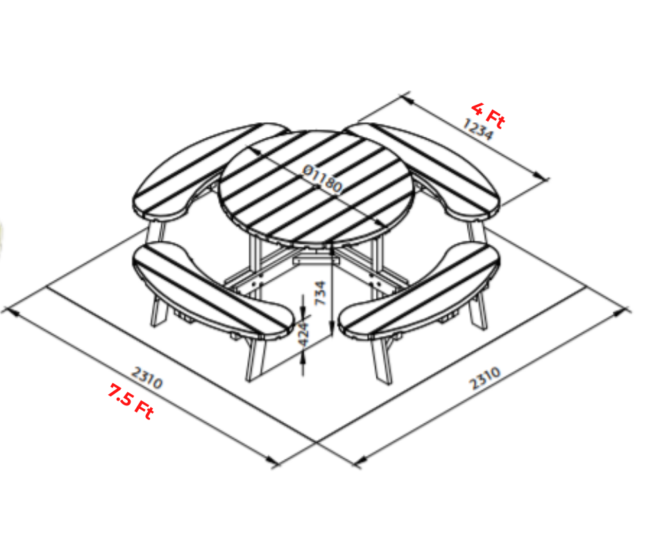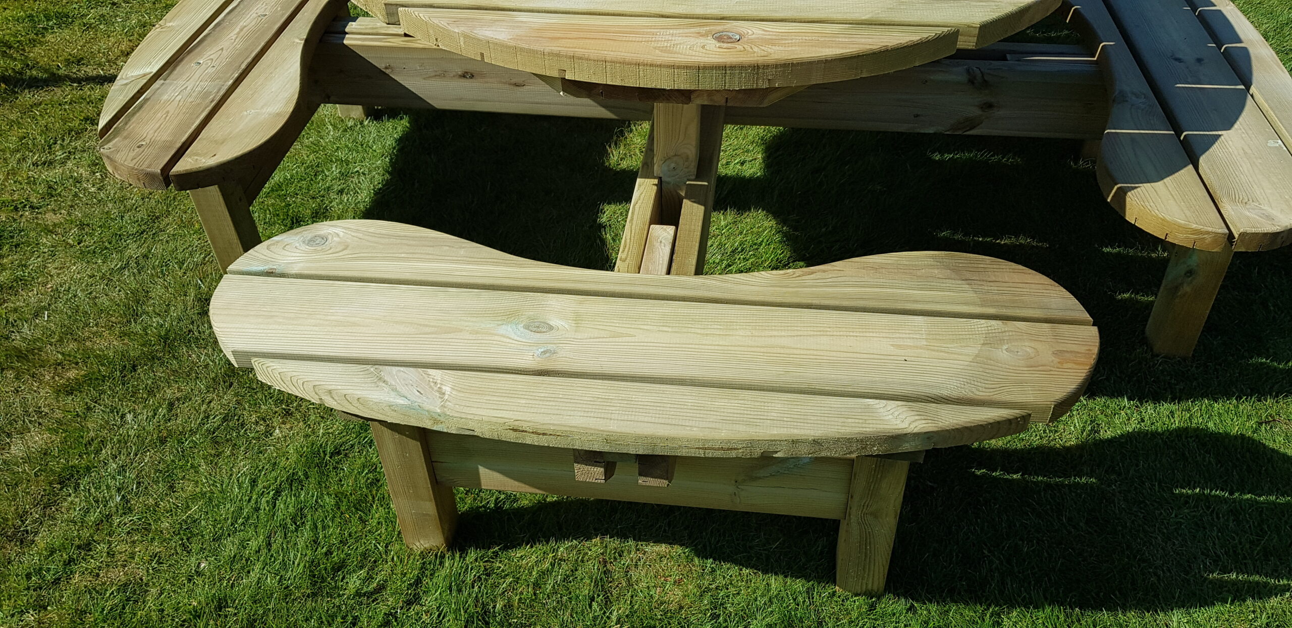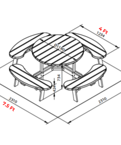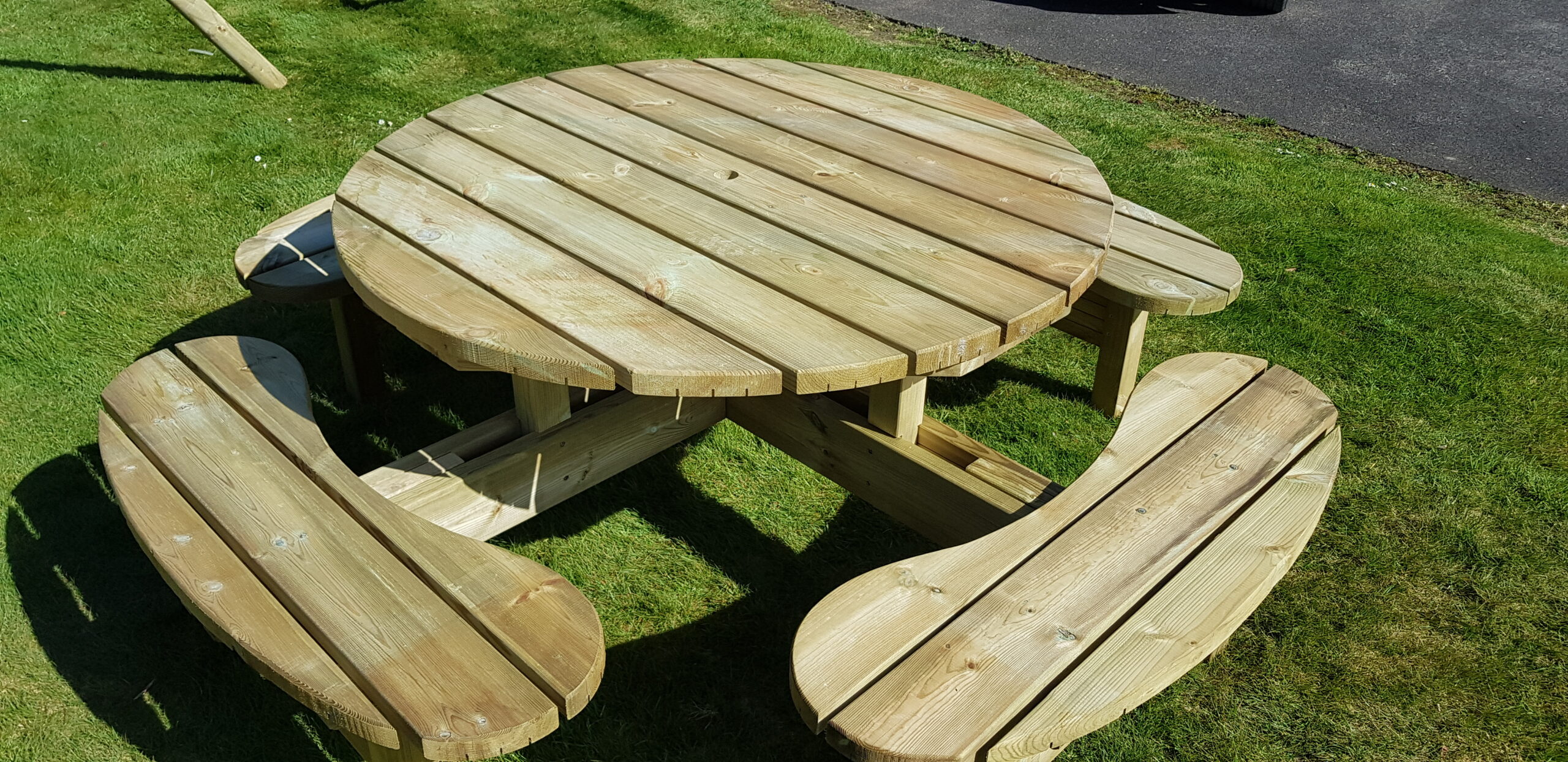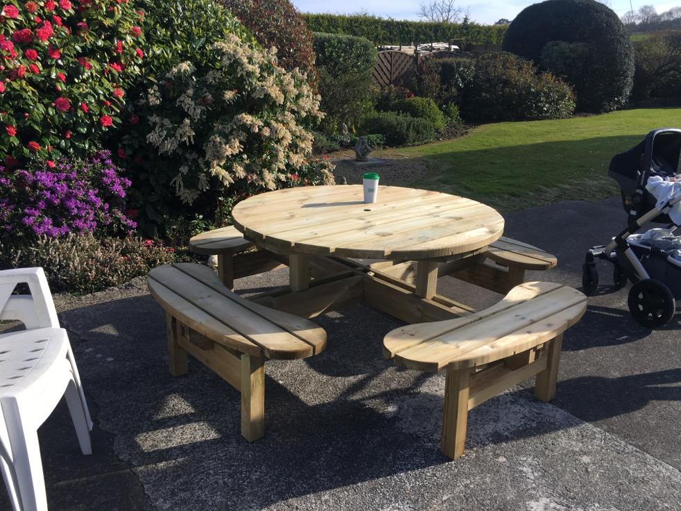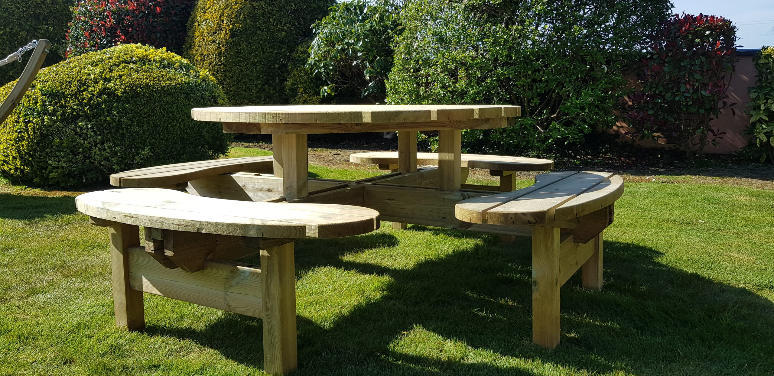 The Dunmore Round Picnic Table is manufactured using heavy duty, pressure treated timber and the anti warp grooving offers a long lifespan. This picnic table comfortably seats 8 people and also features a hole in the center of the table for a parasol. This is the ideal table for both home garden and commercial use outside a bar, restaurant, cafe or public space. Check out the rest of our garden furniture range here.