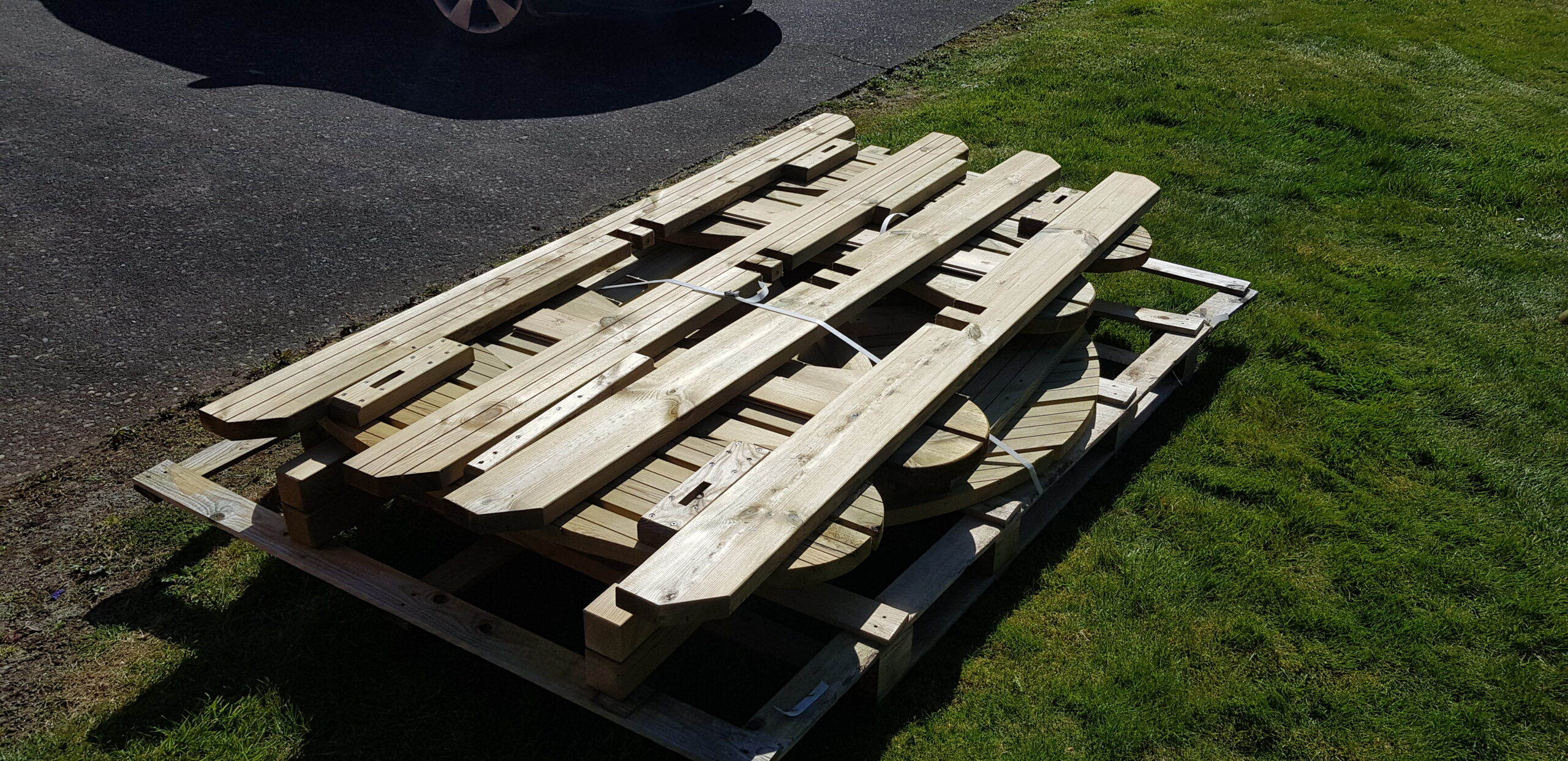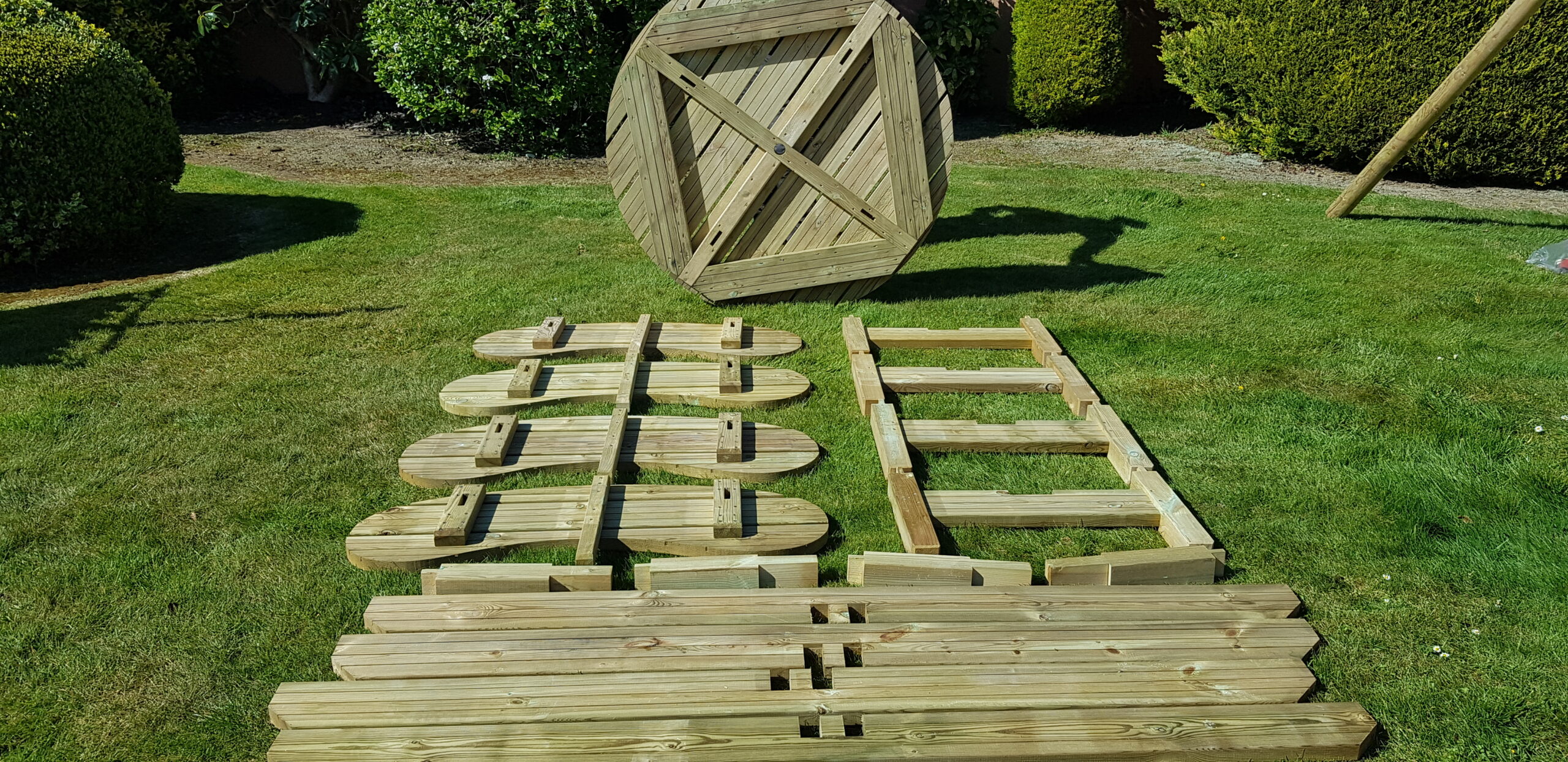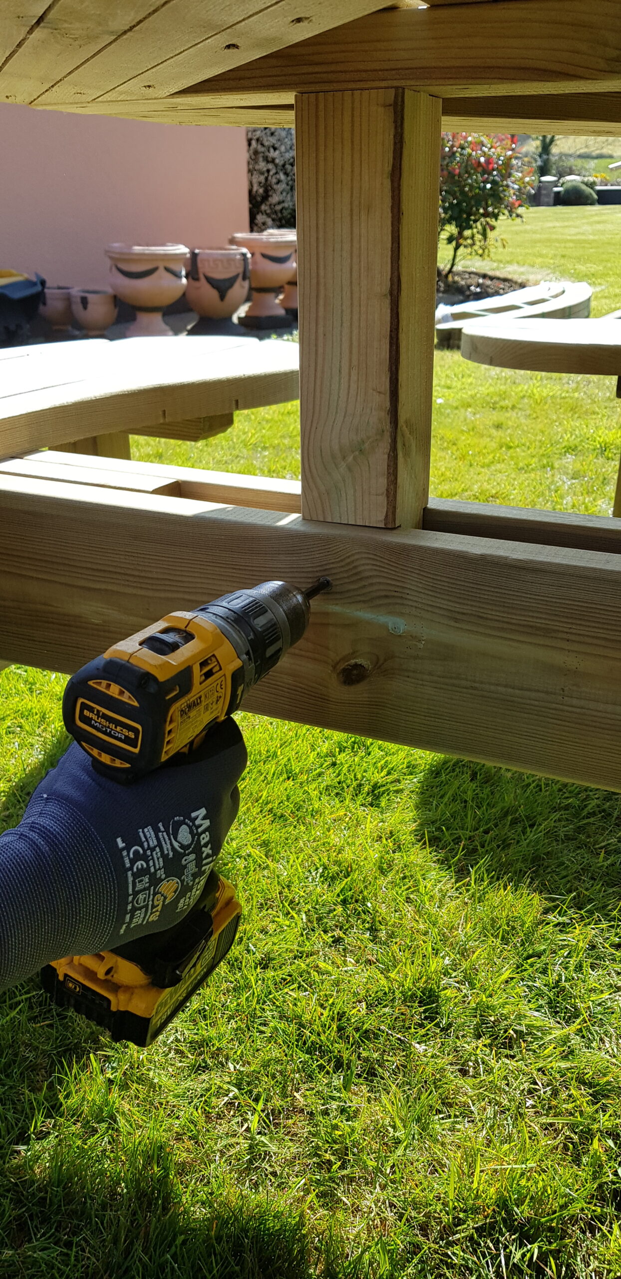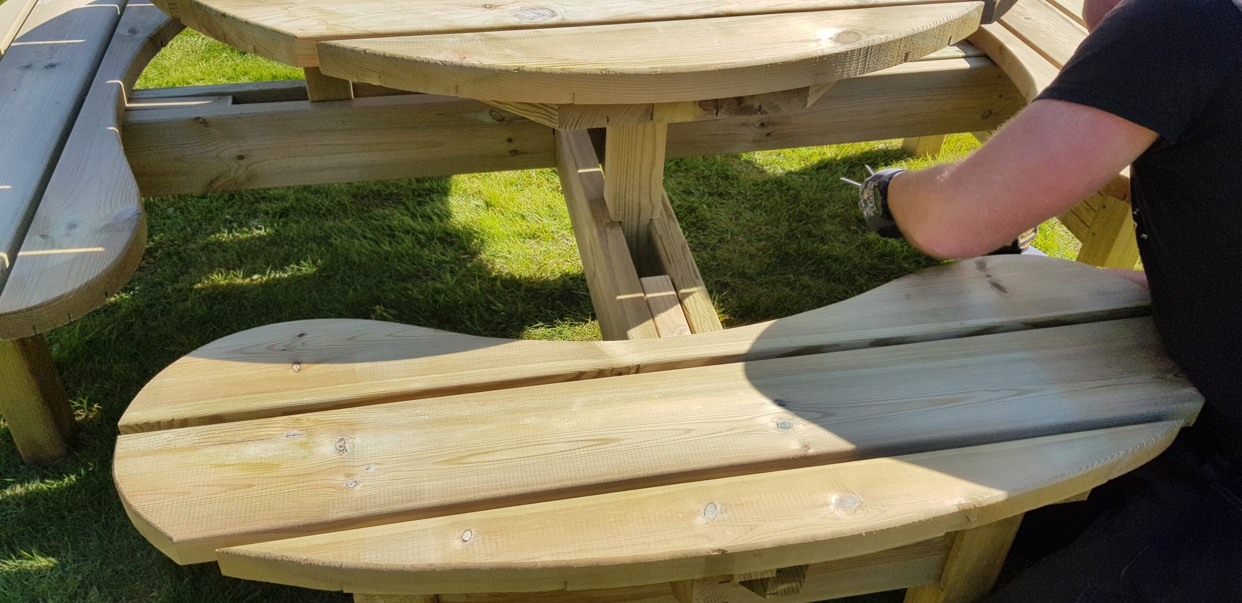 Click here to see a detailed assembly video for the Dunmore Round Picnic Table.