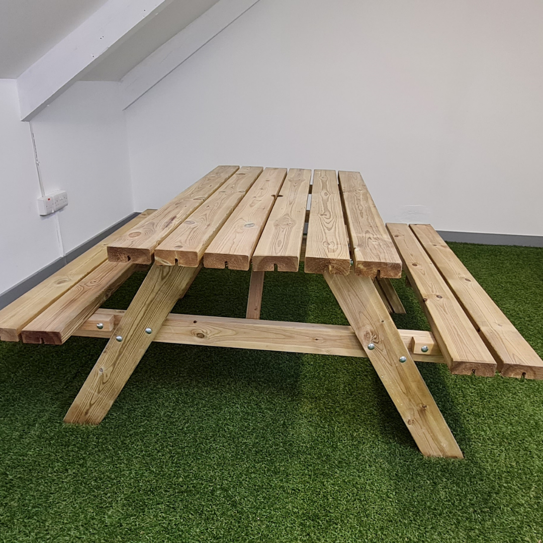 This outdoor picnic table is made using Latvian Redwood timber. This product is made using kiln dried timber and stainless steel fixers. Check out the rest of our garden furniture range here.