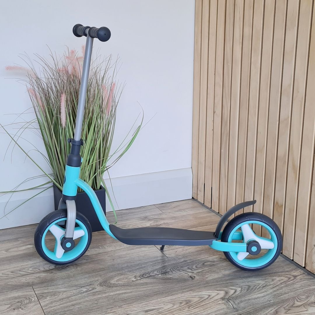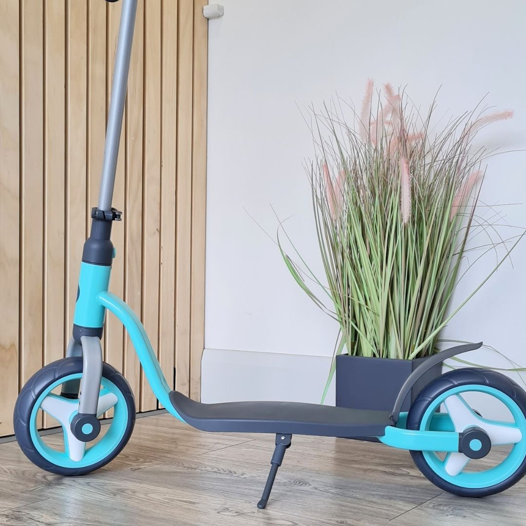 Versatile Fun: Watch your child embrace the thrill of scooting and enjoy the outdoors with this delightful kids’ scooter in a beautiful blue color, promoting active play and adventure.