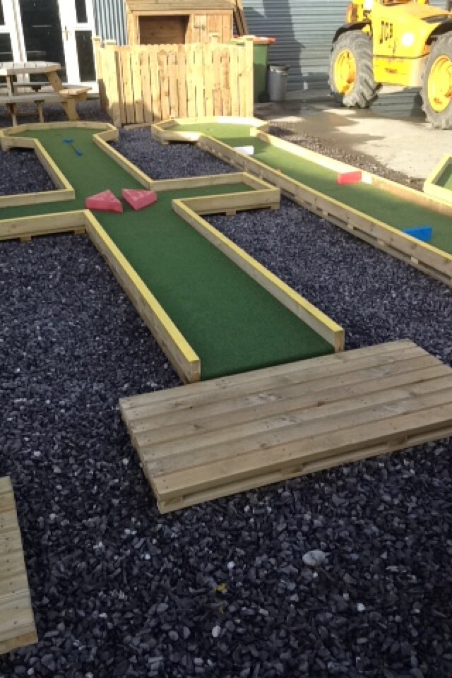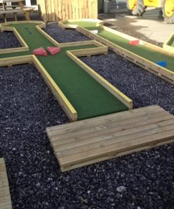 Each Mini Golf Course comes in an easy to assemble prefabricated sections.