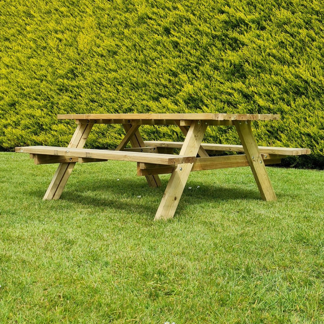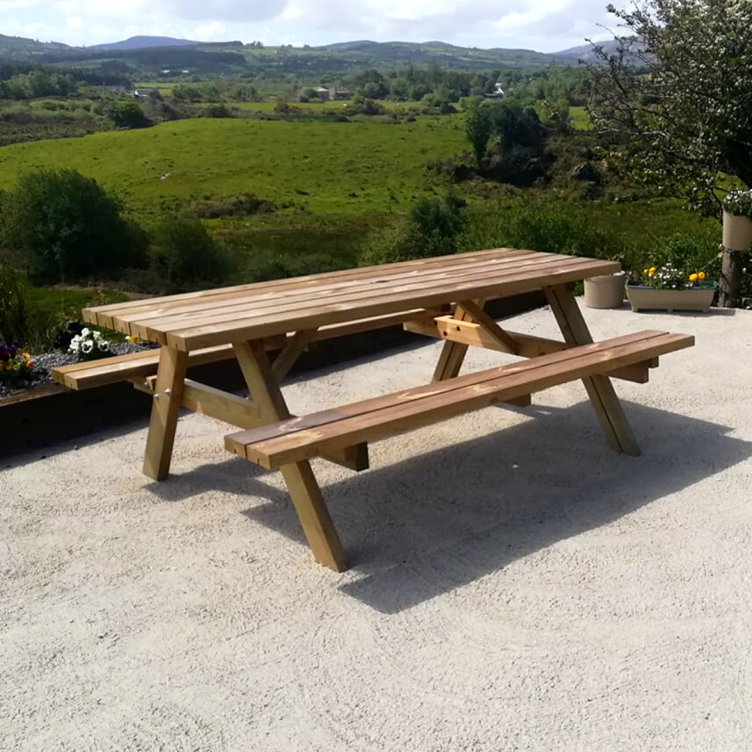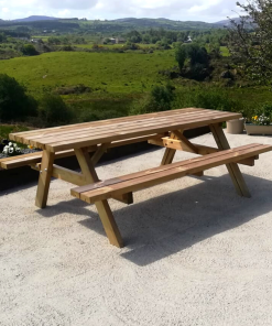 This outdoor wooden picnic table is made using Latvian Redwood timber. This product is made using kiln dried timber and stainless steel fixers. Check out the rest of our garden furniture range here.