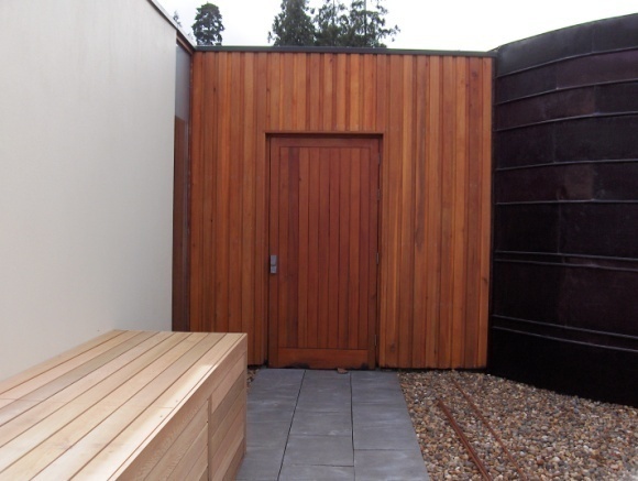 Side entrance door and surrounding wall, fitted at the Maryborough Hotel and Spa, Cork. Both the door and surrounding wall were Cladded in Cedar, ensuring consistency in the design and finish and creating a contemporary look.