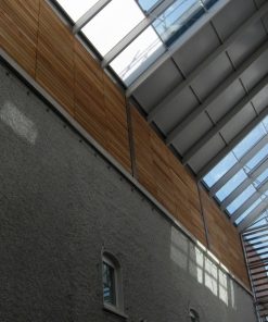 For the interior of the building Cedar Cladding was also used. The timber interior has again a simplistic yet modern design with a consistent finish throughout. Hennessy’s commitment to design excellence is strongly reflected in the exceptional aesthetics of this building. The Cedar Cladding which was used internally was Class O Treated, meaning it is fire retardant and ensuring health and safety issues are being adhered to effectively. Much of the work for this project was fitted off scaffolding and self-propelled mechanical machinery. Hennessy Timber Group ensure health and safety is at the core of all design and fitting of timber.