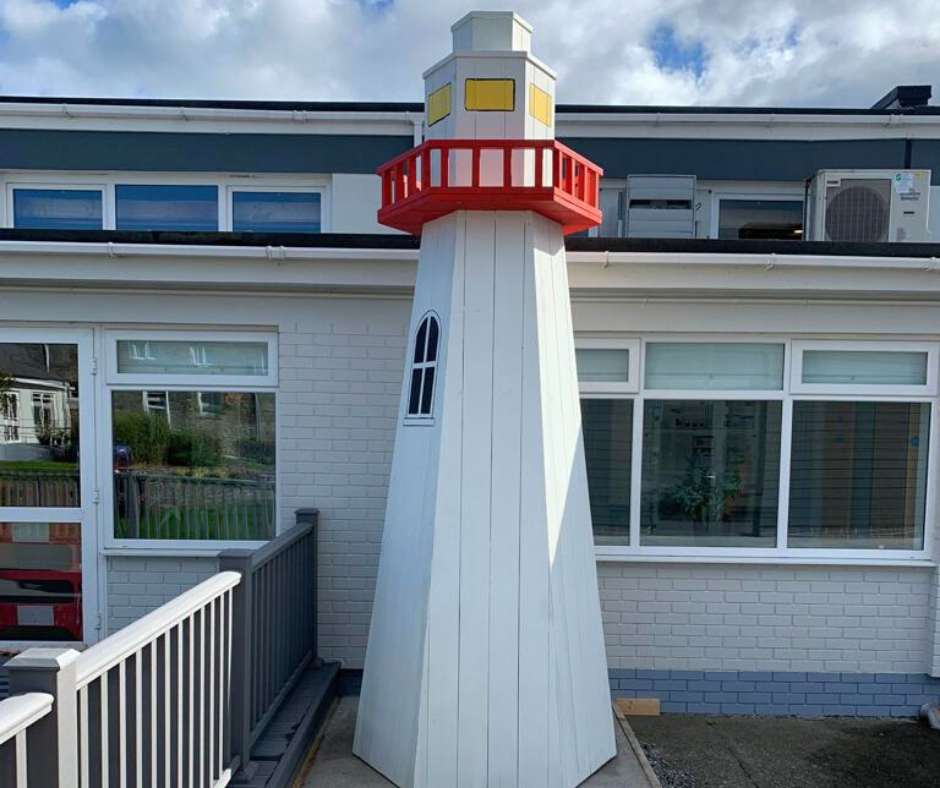 We were delighted to work on this very special project for the patients of the Clonakilty Community Hospital. This 13Ft tall wooden lighthouse was designed, manufactured and decorated by our expert team, offsite in our factory in Clonakilty, then safely transported to its final destination at the community hospital. The lighthouse makes an attractive, bright, colourful and eyecatching addition to the outdoor area and has been a big hit with the patients and hospital staff alike.